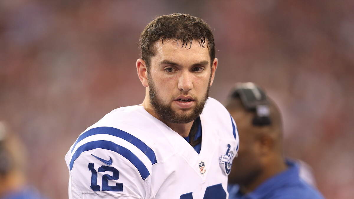 Former Indianapolis Colts quarterback Andrew Luck gave a nod to a popular meme while making a surprise, rare television appearance during the Thursday Night Football postgame show following the San Francisco 49ers' rout of the New York Giants in Week 3.