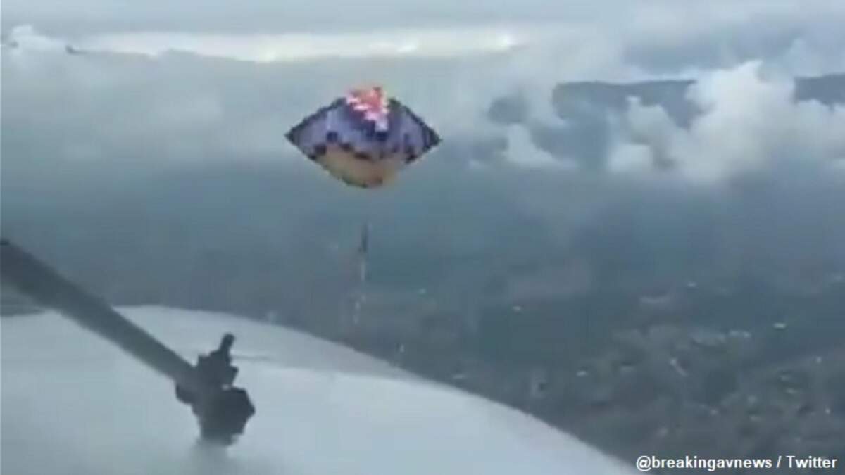 In the video, which was shot from the cockpit of the airliner, a dark object can be seen emerging from the clouds in the distance. Although initially mysterious, the oddity quickly comes into focus as it flies towards the plane. Growing larger and larger, the aerial interloper eventually reaches the plane and is revealed to be a colorful and fairly sizeable balloon that vanishes beneath the airliner, presumably not colliding with the craft.
